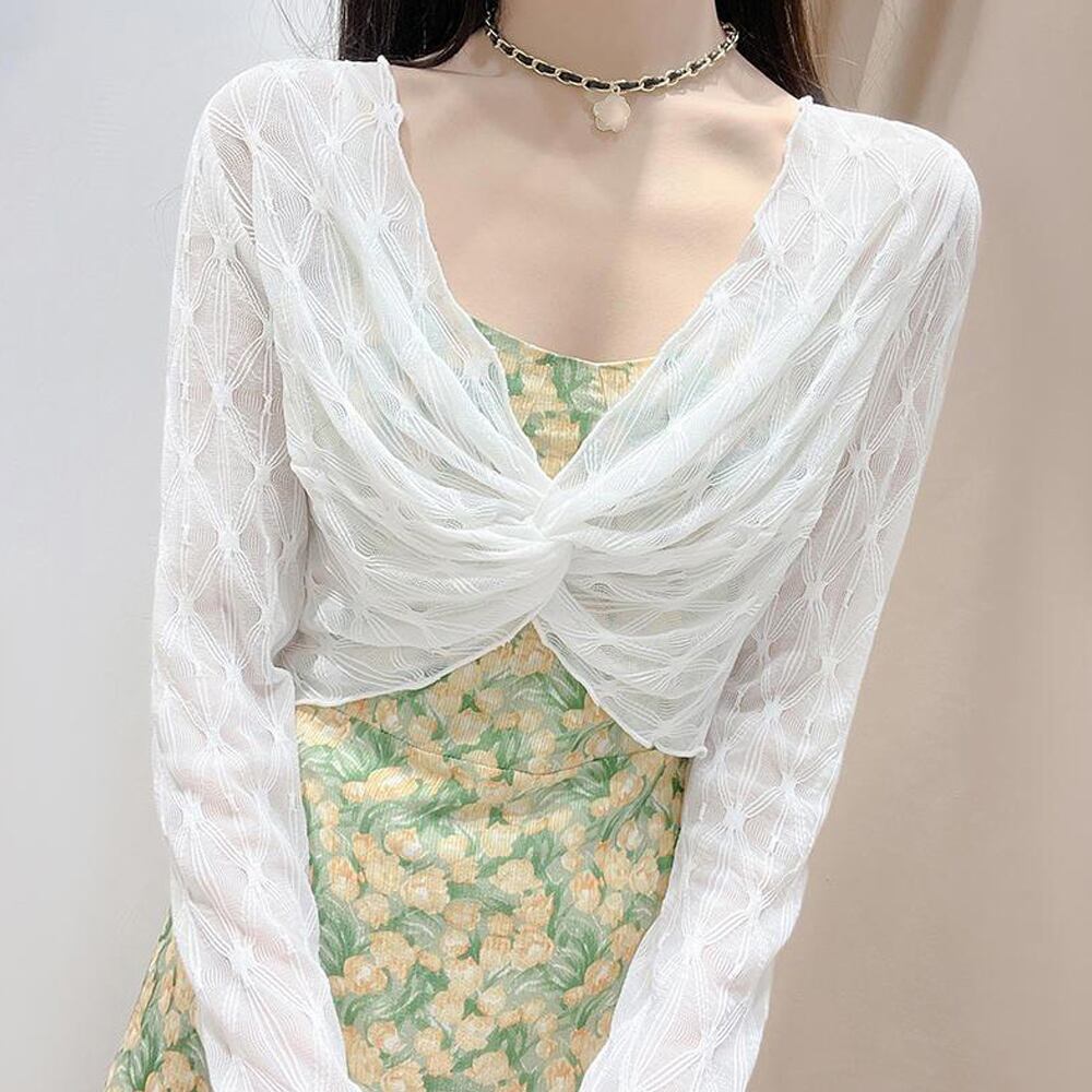 ショート丈トップス レディース 透け感 Vネック 重ね着 大人可愛い 韓国ファッション クロップド丈 鎖骨見せ セクシー