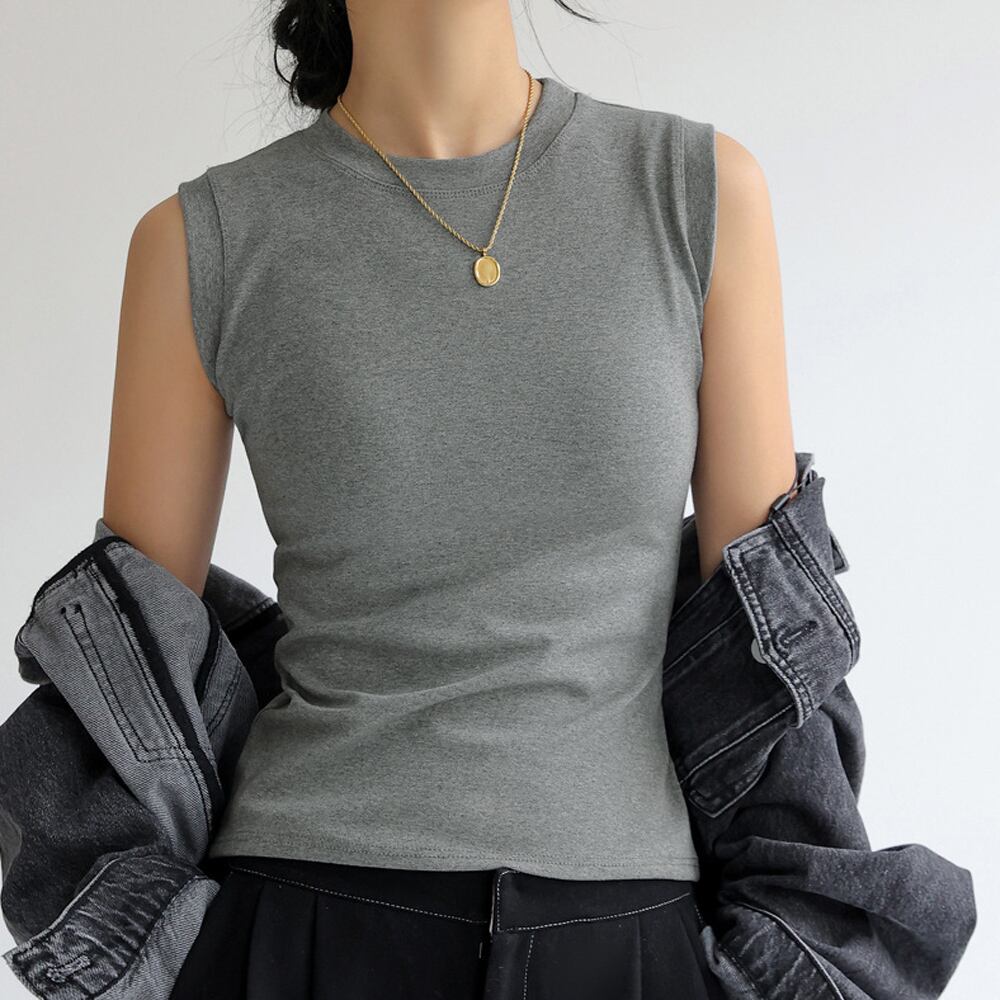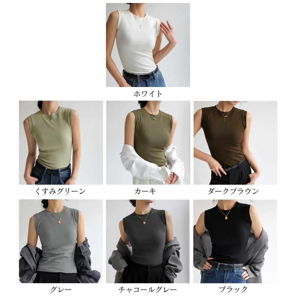 ストレッチ性に優れた生地で1日中快適な着心地のノースリーブトップス。