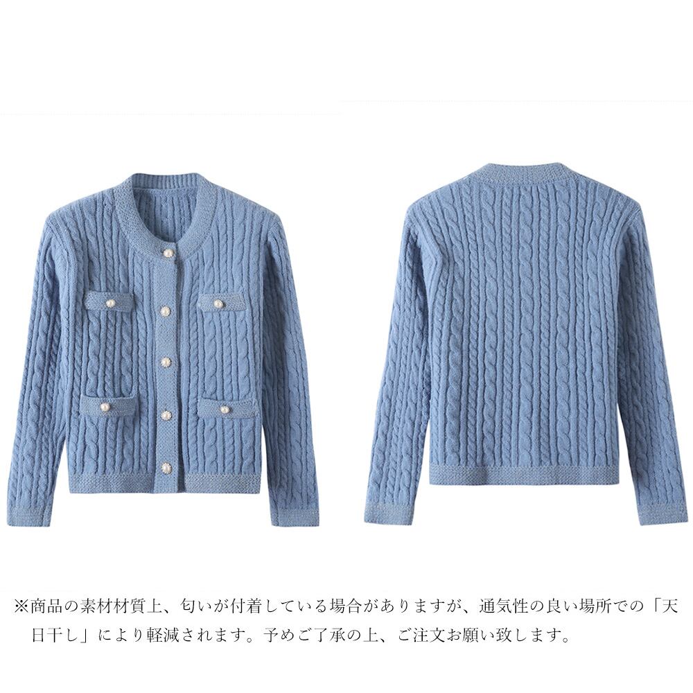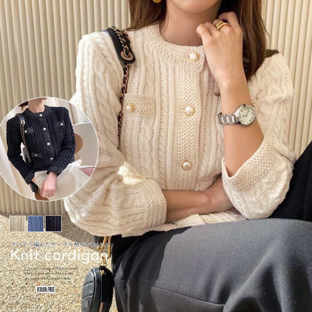 ショート丈 ニットトップス 長袖 レディース フェイクパールボタン 前開き ニットセーター おしゃれ アウター 韓国羽織り上品大人女性 ニットソー 着やせ オフィスカジュアルシンプルなコーデにさっと羽織るだけでこなれ感が増すケーブル編みニットカーディガンです羽織るだけで秋にシフトできたり、ニットのように一枚で着てコーデを楽しんだりすることができますスカートと組み合わせて、大人フェミニンコーデが出来上がります素材:アクリル100%カラー:ブラック/アイボリー/ブルーサイズ:ワンサイズ着丈:約51cm 肩幅:約43cm 袖丈:約52cm ゆき:約73.5cm 身幅:約51cm 胸囲:約104-134cm裏地:なし伸縮性:あり透け感:ざっくり編み仕様により若干あり生産国:中国※商品の細部仕様は多少異なる場合がございます。予めご了承の上、ご注文お願い致します。