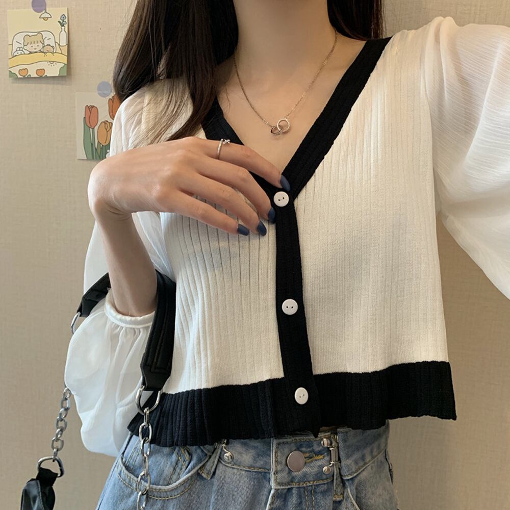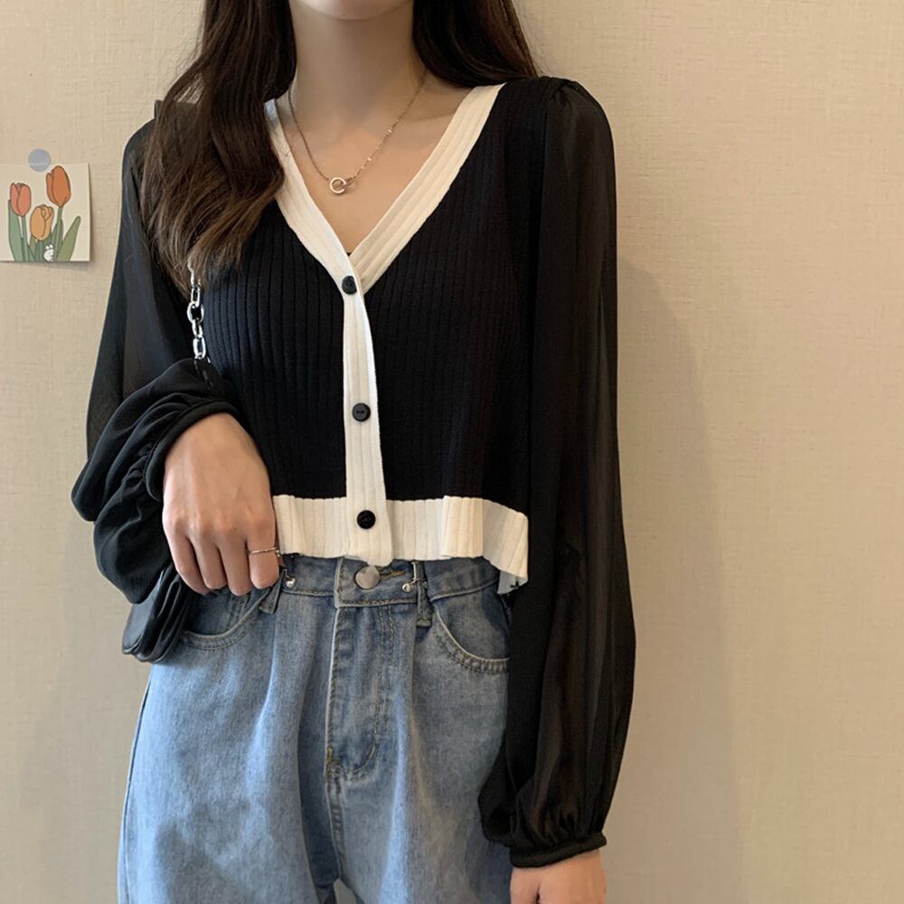 シフォン袖ニットカーディガン 韓国風