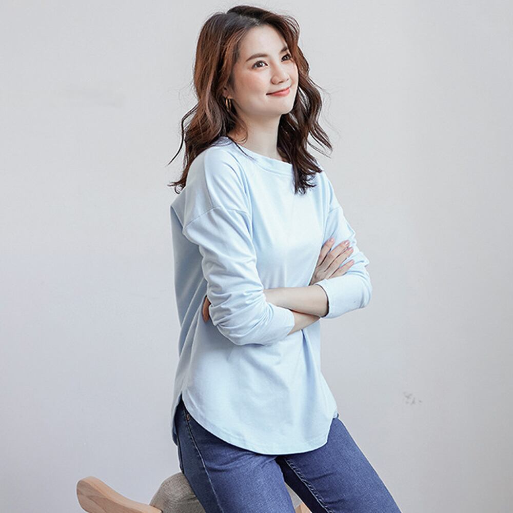 サイドにラウンドのスリットが入った、爽やかカラーのカットソーです一枚はもちろん、お持ちのベストやビスチェを重ねても今っぽくオシャレにゆったりサイズで動きやすいから、部屋着として1枚でも着れる、おうち時間をおしゃれに楽しもう素材:ポリエステル70%+綿30%カラー:ホワイト/ブラック/ベージュ/薄ブルー/ラベンダーサイズ:ワンサイズ着丈(前/後):約67cm/71cm 肩幅:約62cm 袖丈:約46cm ゆき:約77cm 身幅:約55cm 胸囲:約110cm裏地:なし伸縮性:なし透け感:淡色のみややあり生産国:中国※商品の細部仕様は予告なく変更になる場合がございます。予めご了承の上、ご注文お願い致します。