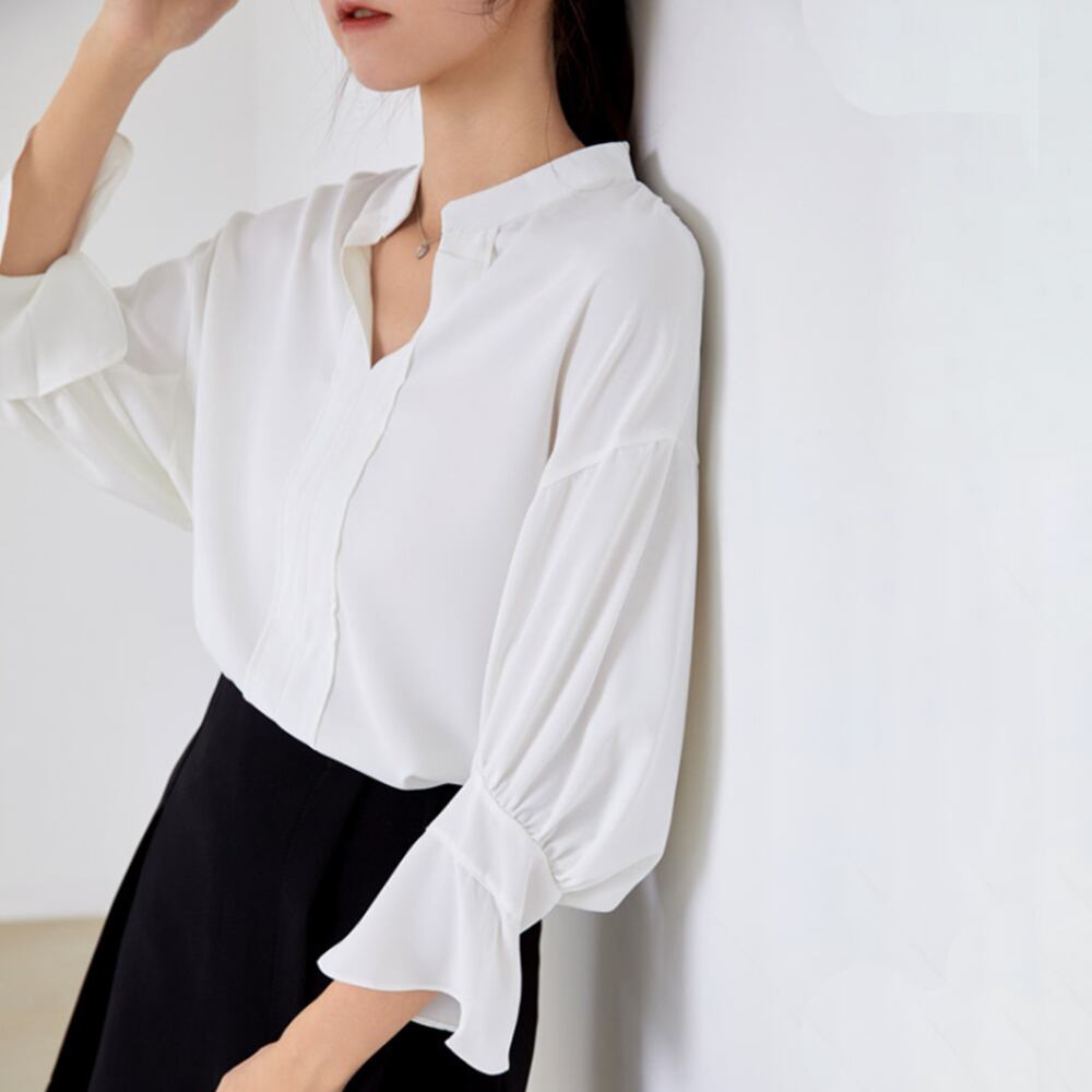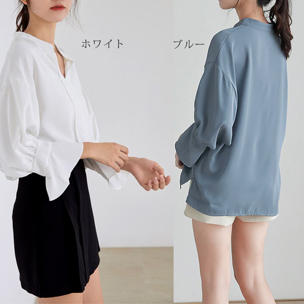 スキッパー シャツブラウス レディース 七分袖 とろみブラウス パフスリーブ