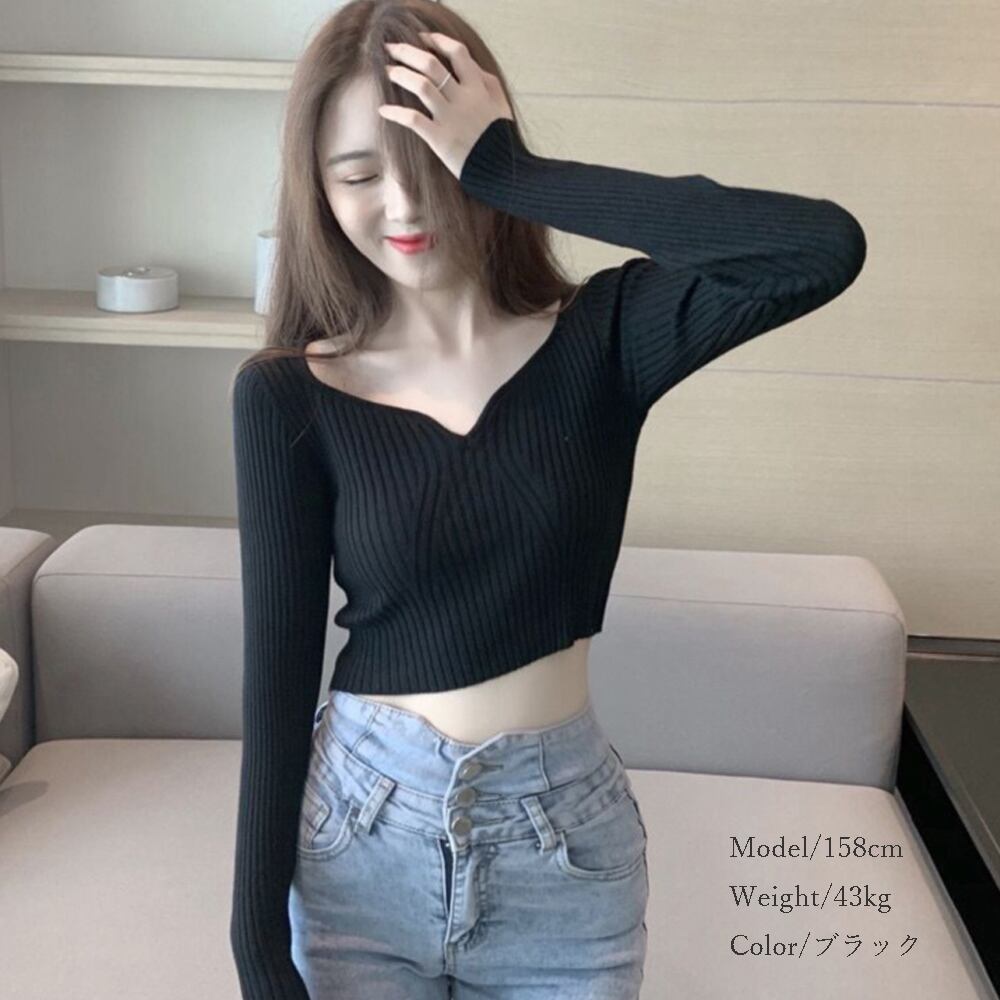 ハートネック リブニット レディース デコルテ へそ出し トップス ショート丈