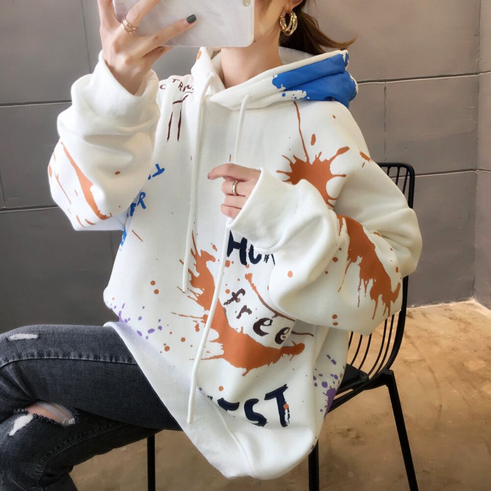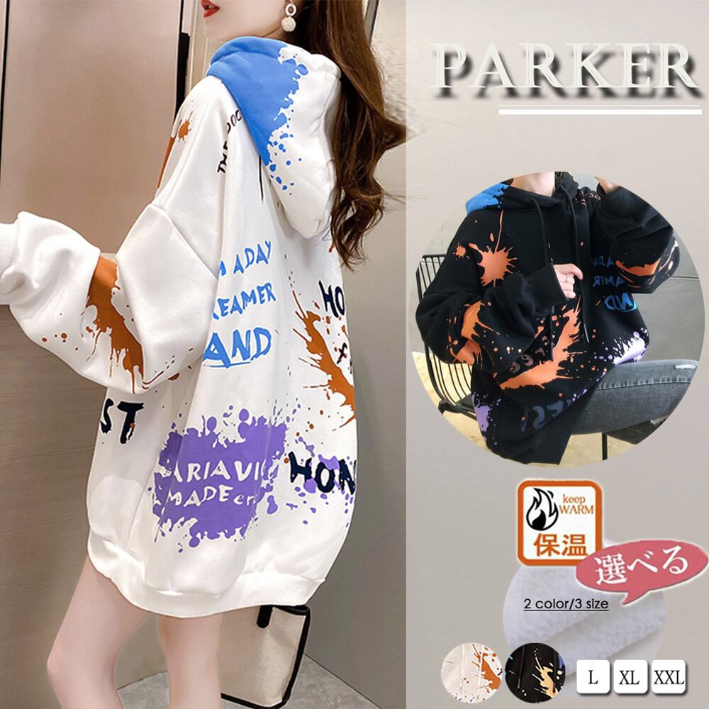 ペイント柄 フード付き パーカー レディース 裏起毛 長袖トレーナー 秋冬