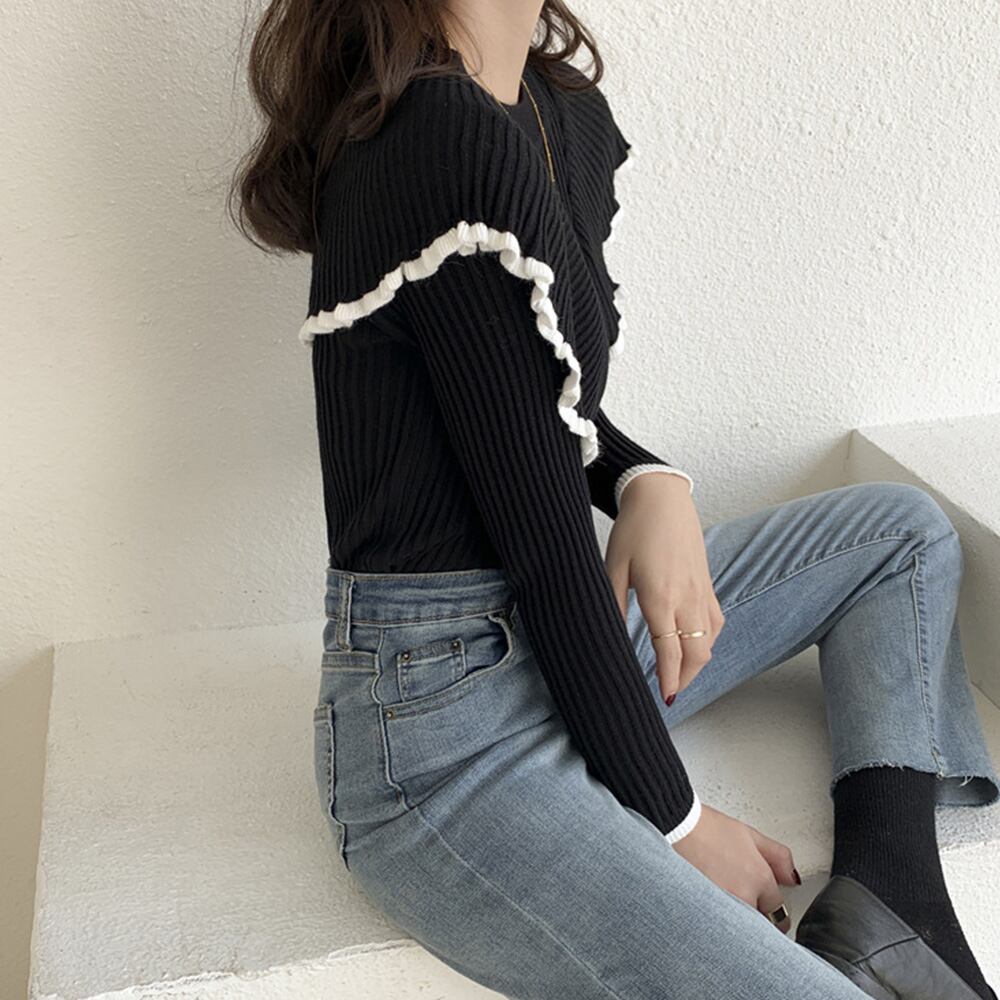 韓国風 モックネック ニットセーター フリルトップス長袖 秋冬 ニットソー スリムフィット 無地 ニットプルオーバーニット 秋冬新作 無地トップス韓国風 着やせプルオーバー一枚あれば絶対に使えるクルーネックニットセーター肩周りフリルのデザインが可愛くて、よい厚みのリブニット素材で暖かく、ロングシーズン活躍タイトですっきりとしたシンプルデザインで、どんなスタイルにも合う素材:ポリエステル75%+アクリル25%カラー:ブラック/ベージュ/グリーンサイズ:ワンサイズ着丈50cm 肩幅:約33cm 袖丈:約50cm ゆき:約66.5cm 身幅:約33cm 胸囲:約66-100cm裏地:なし伸縮性:あり透け感:なし生産国:中国※商品の細部仕様は多少異なる場合がございます。予めご了承の上、ご注文お願い致します。