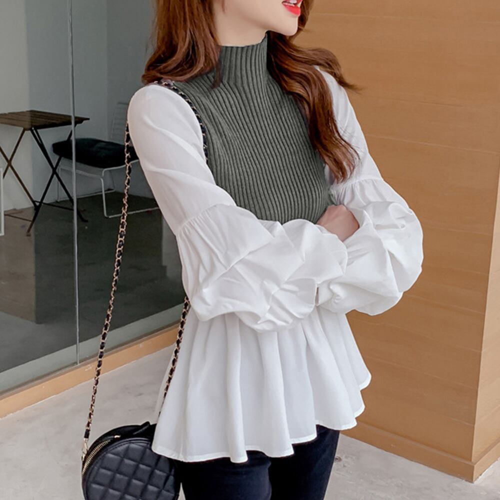 ふんわりボリュームスリーブがクラシカルなブラウスと、ノースリーブニットのレイヤードトップス身ごろは伸縮性のあるニットですので体のラインを拾わず細くすっきり見えが叶いますフレアなペプラムシルエットで気になる腰回りもカバー、ボリュームスリーブで二の腕隠し袖部分にボリュームがあるので二の腕のほっそり見せが叶いますシンプルなボトムスとの相性が抜群、スキニーパンツで甘辛クールビューティー、スカートと合わせてゆるふわフェミニンガーリー、気分によって色んなコーデが楽しめる素材:ポリエステル75%+アクリル25%カラー:ブラック/ダークグレー/ウォームブラウンサイズ:M/L[M]着丈:約60cm 肩幅:約25cm 袖丈:約55cm ゆき:約67.5cm 身幅:約27cm 胸囲:約54-100cm[L]着丈:約61cm 肩幅:約27cm 袖丈:約55cm ゆき:約68.5cm 身幅:約29cm 胸囲:約58-104cm裏地:なし伸縮性:身頃あり/裾、袖なし透け感:身頃なし/裾、袖あり生産国:中国※商品の細部仕様は予告なく変更になる場合がございます。予めご了承の上、ご注文お願い致します。