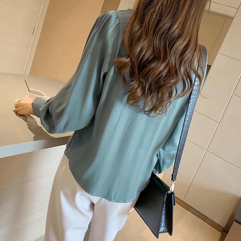 リボンタイ付き ブラウス レディース 長袖 サテン ブラウス ボウタイ付き