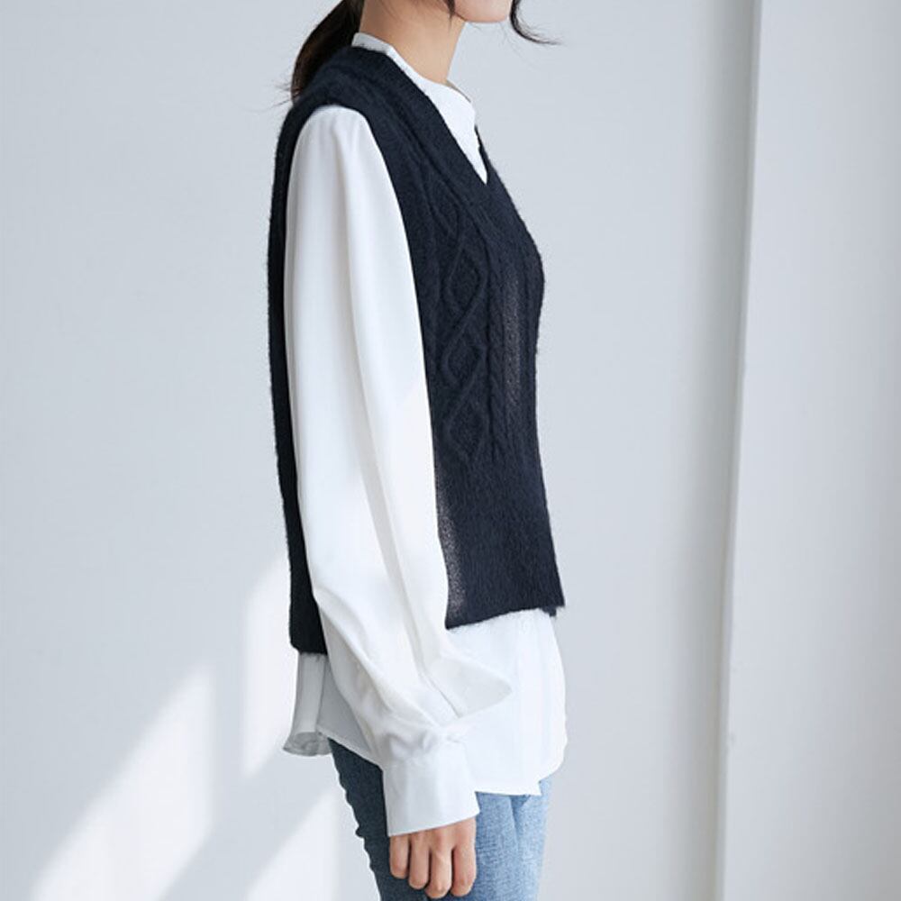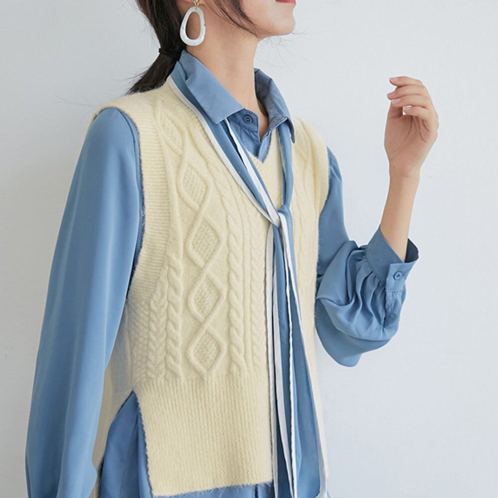 ケーブルニット ベスト レディース ニット トップス vネック ノースリーブ