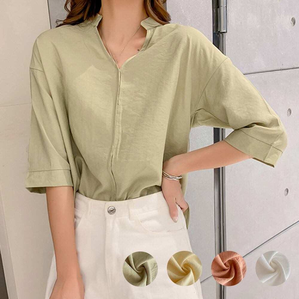 vネック ブラウス スキッパー シャツ レディース ブラウス 五分袖 トップス