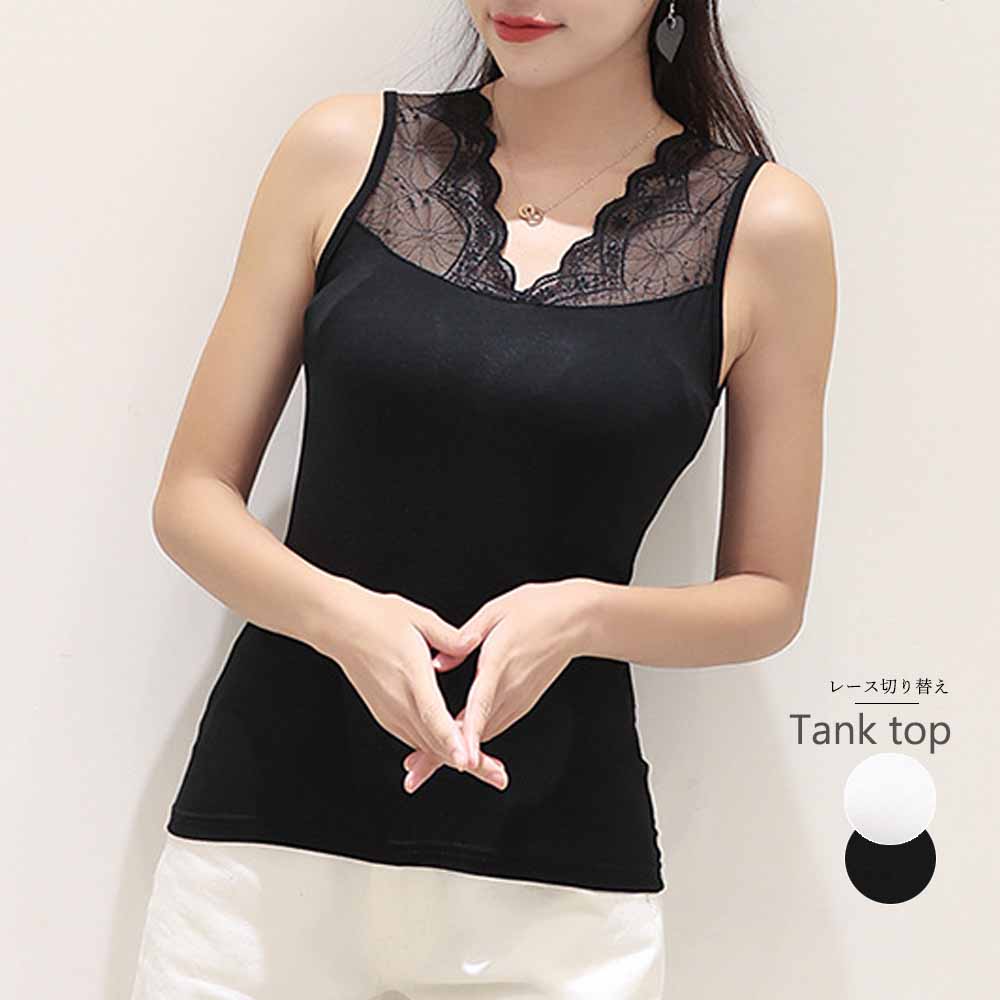 レース タンクトップ vネック インナー レースキャミソール ペチコート