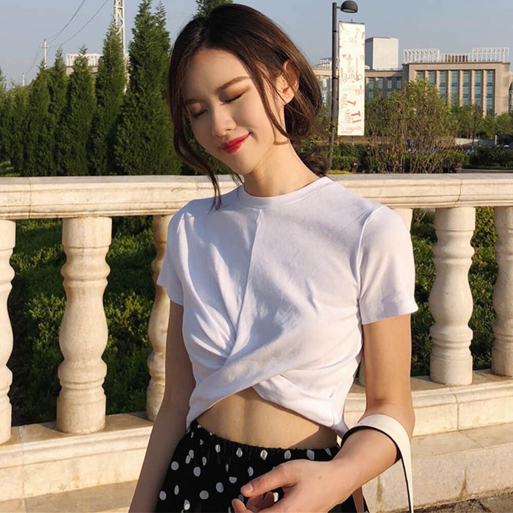 ヘソ出し tシャツ レディース 半袖 カジュアル フロントクロス トップス
