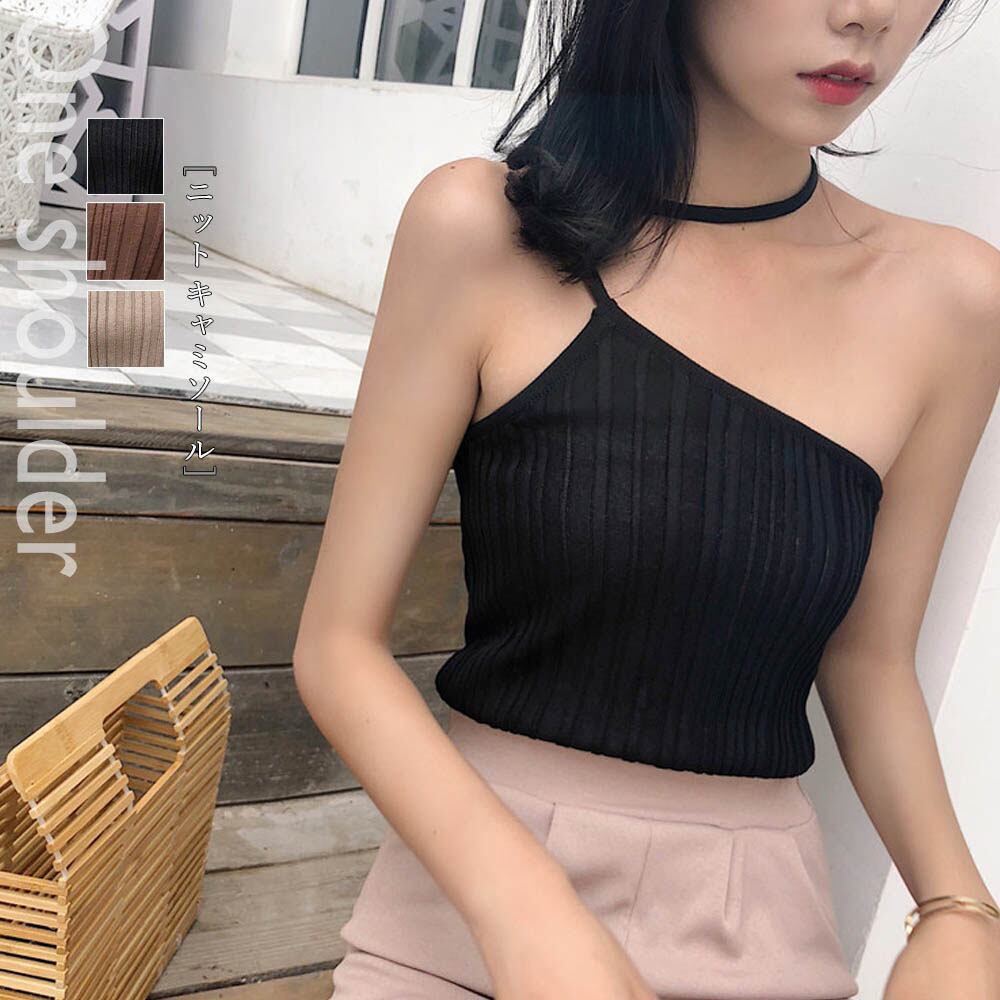 ホルターネック ニット キャミソール セクシー ワンショルダー ニット