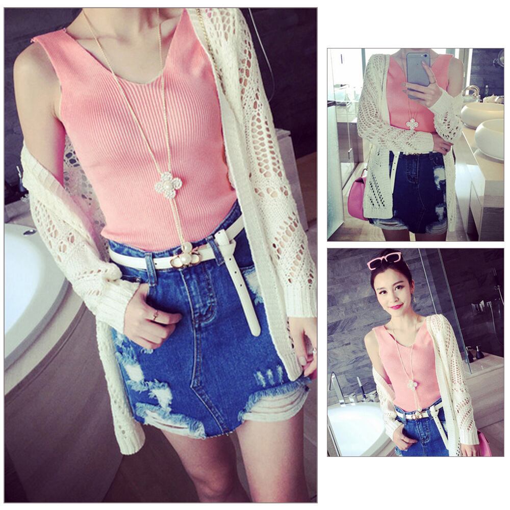 トップス レディース 春 タンクトップ Vネック サマーニット ノースリーブ