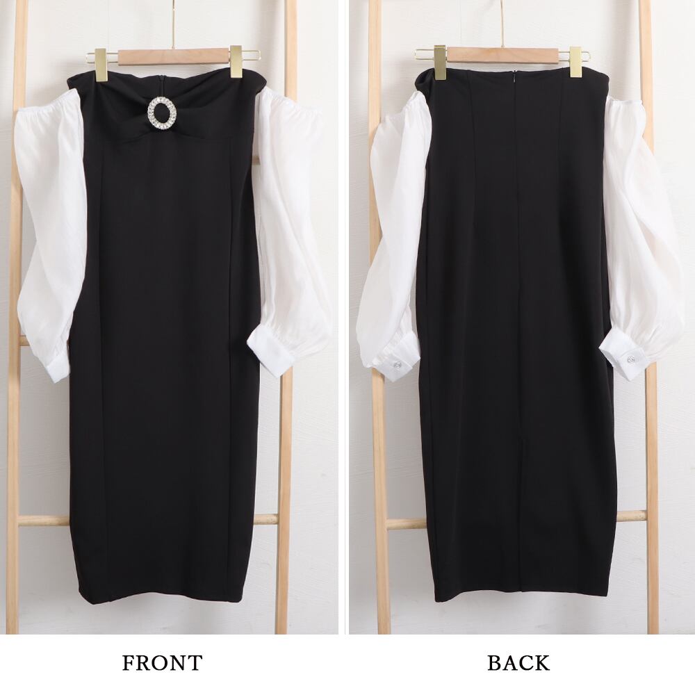 結婚式ドレス 披露宴 着やせ長袖 ロングワンピース 大人上品 オフショルダータイトワンピース 2way きれいめお呼ばれ披露宴ドレス二次会 ドッキングワンピ キャバドレス 韓国デコルテラインを美しく魅せる上品な切り替えワンピースドレスパフスリーブが腕をさりげなくカバーしてくれる胸元にシリコン製のすべり止めがついているので、安定感とフィット感抜群オフショルダーとしての着用はもちろん、肩を落とさずデコルテラインをすっきり見せてくれるスクエアネックとしても着用OKな2WAY仕様身頃素材:ポリエステル65%+綿30%+ポリウレタン5%袖素材:ポリエステル100%カラー:ブラックサイズ:S/M/L[S]総丈:約91cm 袖丈:約54cm 身幅:約39cm 胸囲:約78-90cm ウエスト:約70-82cm ヒップ:約84-96cm[M]総丈:約93cm 袖丈:約56cm 身幅:約41cm 胸囲:約82-94cm ウエスト:約78-90cm ヒップ:約90-102cm[L]総丈:約95cm 袖丈:約58cm 身幅:約43cm 胸囲:約86-98cm ウエスト:約82-94cm ヒップ:約92-104cm裏地:なし伸縮性:あり透け感:袖部分のみ若干あり生産国:中国※商品の細部仕様は多少異なる場合がございます。予めご了承の上、ご注文お願い致します。