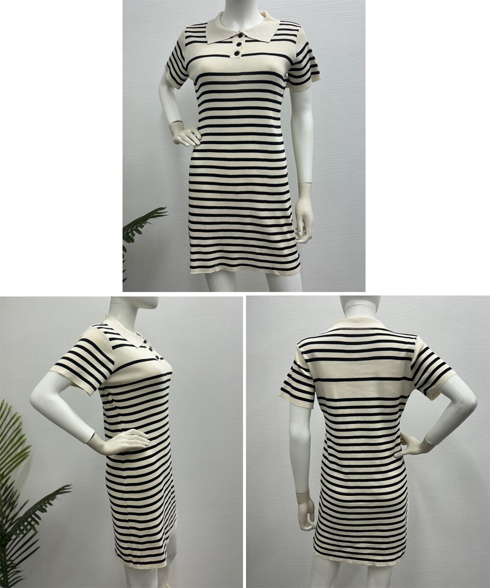 ボーダー柄ニットワンピースポロワンピース