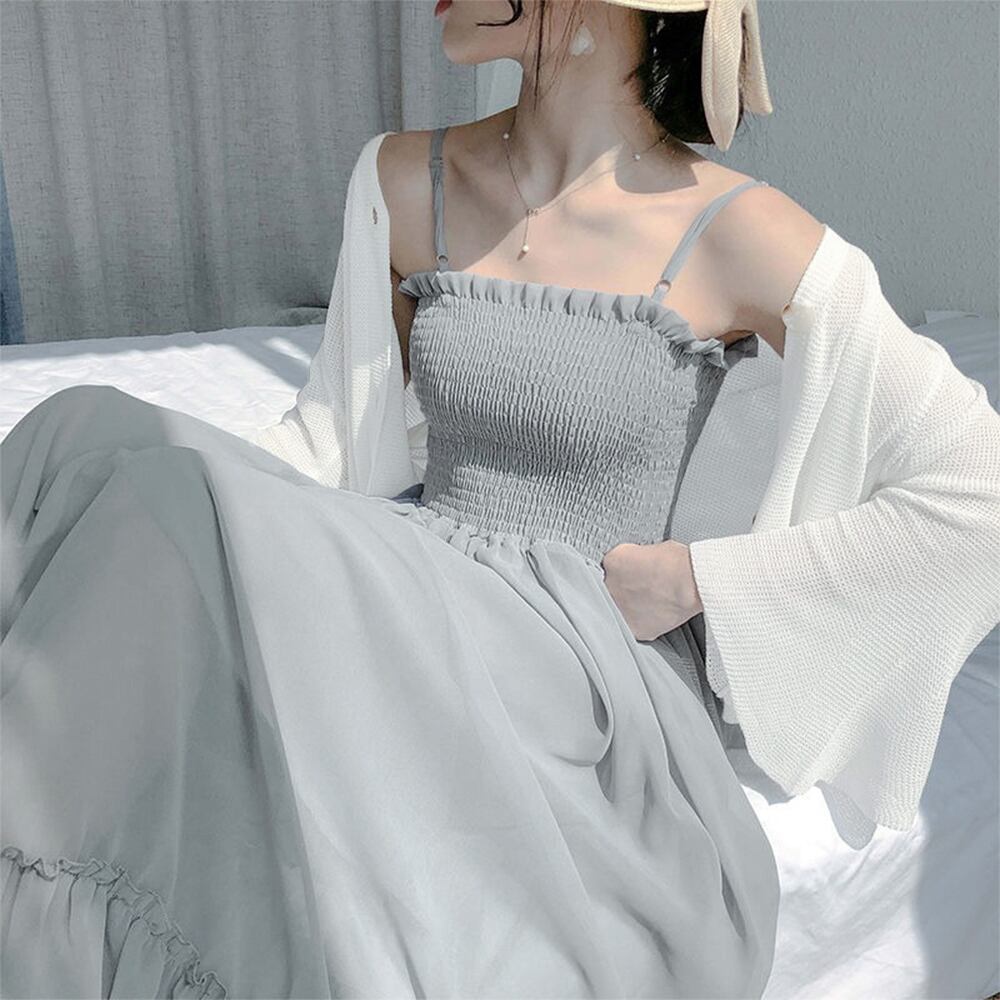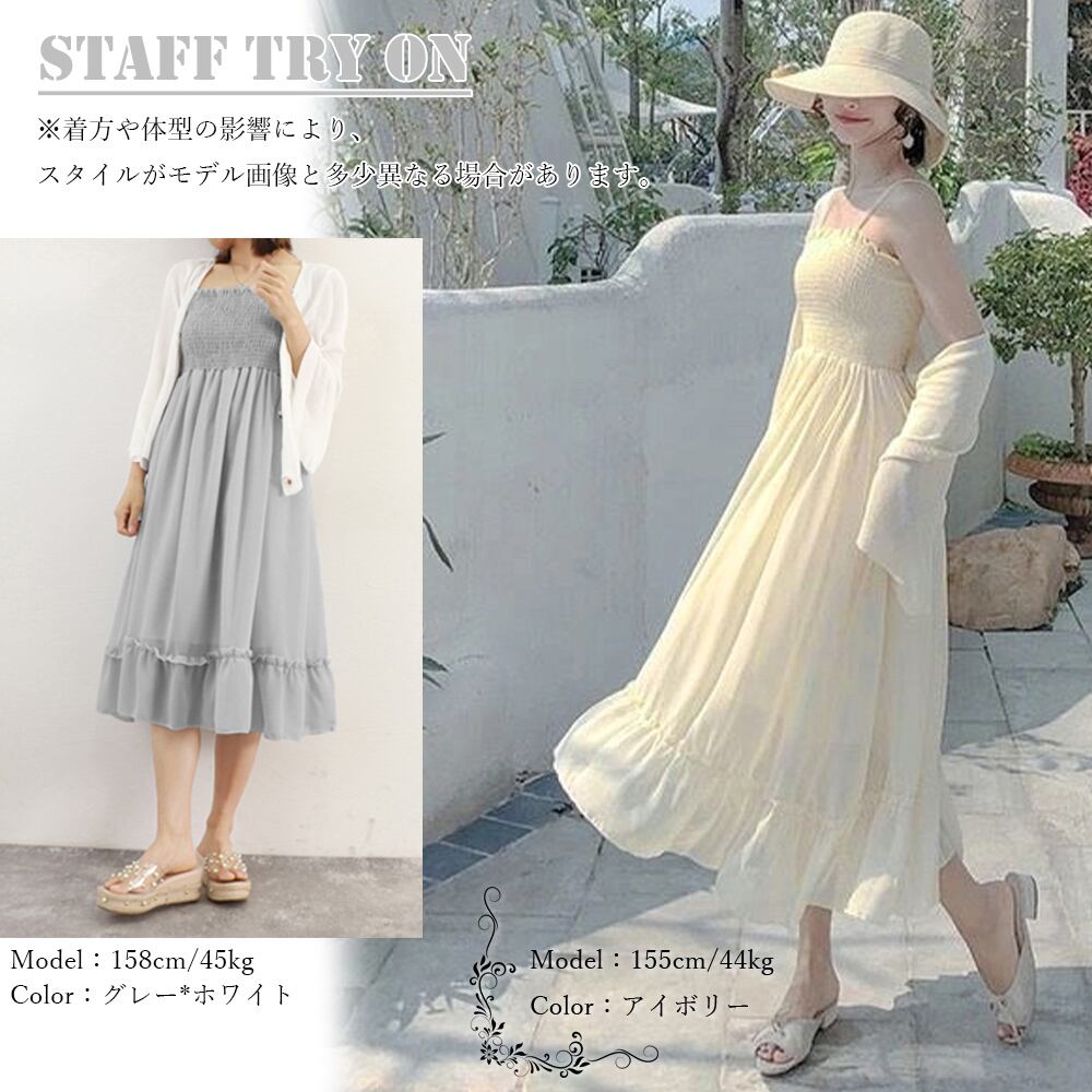 レディース アンサンブル フレアロングワンピ カーデ セットアップ ノースリーブワンピ 夏羽織り 韓国シャーリングワンピ