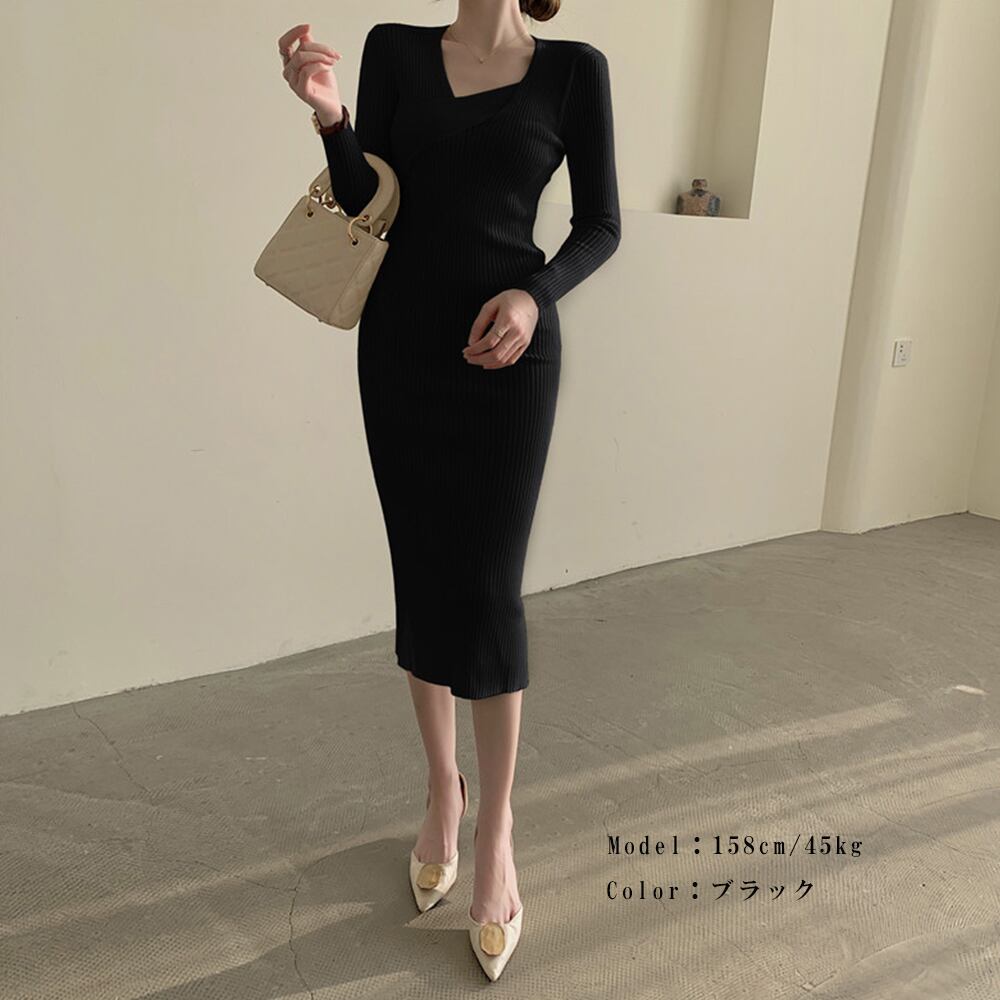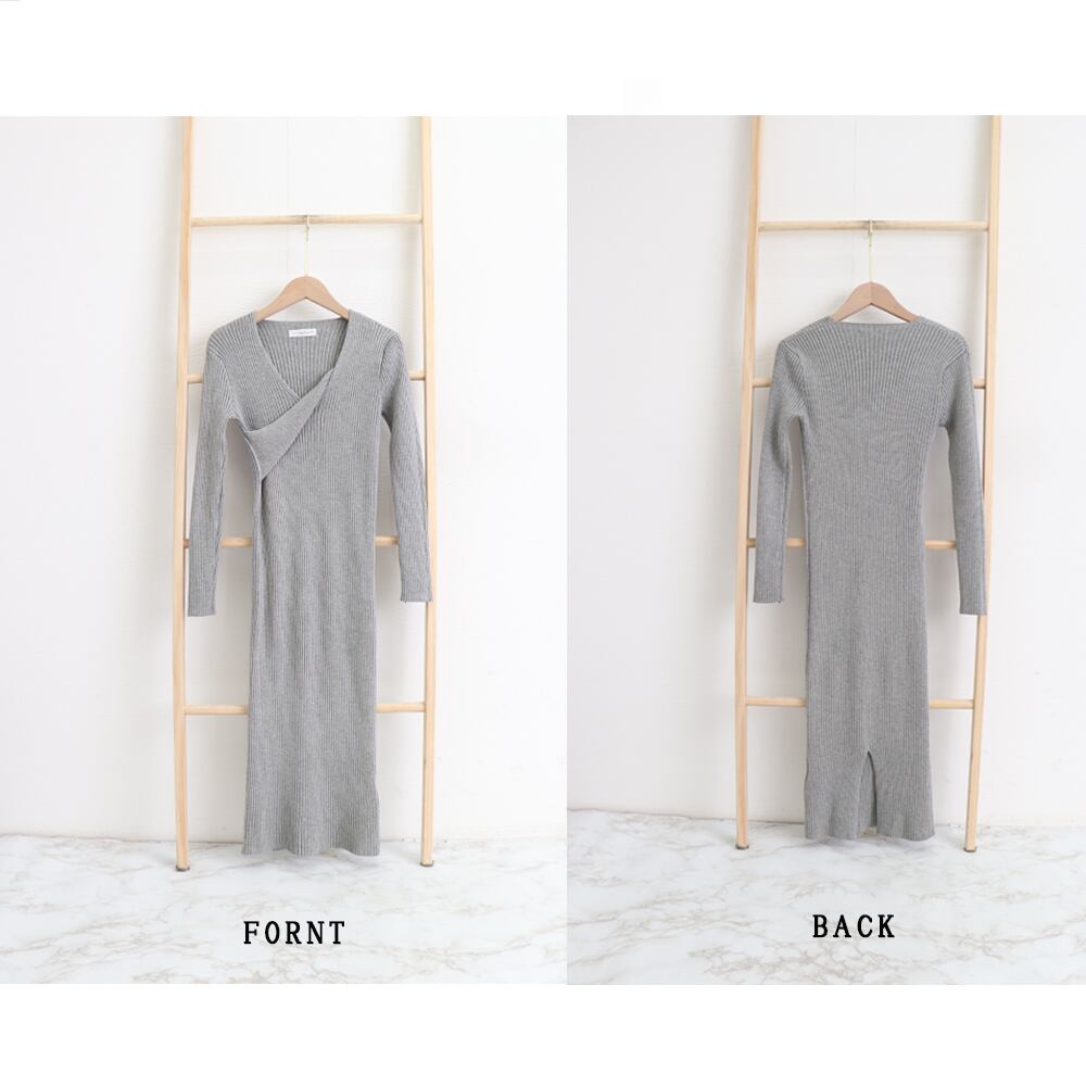 タイト ニットワンピース クロスネック