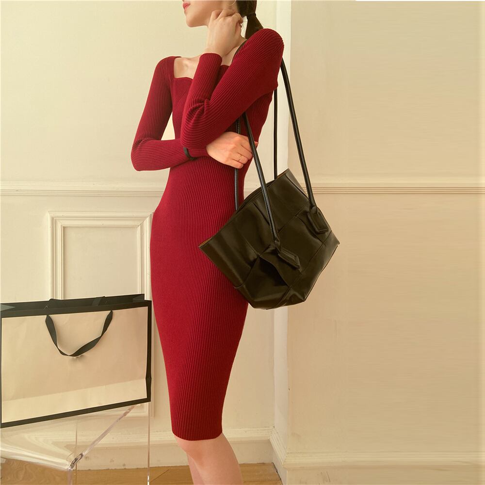 レディース セクシー タイトワンピース 大人女性 デコルテ見せ 膝丈ワンピ パーティーワンピ ドレス きれいめ 無地