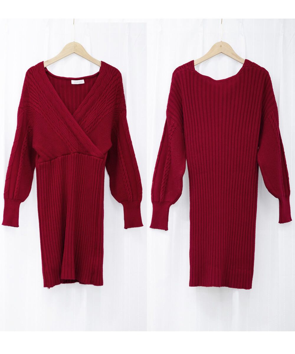 ケーブル編みにリブ編み、遊びゴコロ満載でお洒落な韓国新作DESIGNのレディースショート丈ニットワンピース