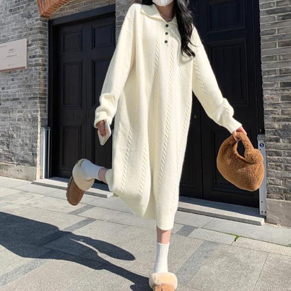 ケーブル編み ニットワンピース 韓国秋冬