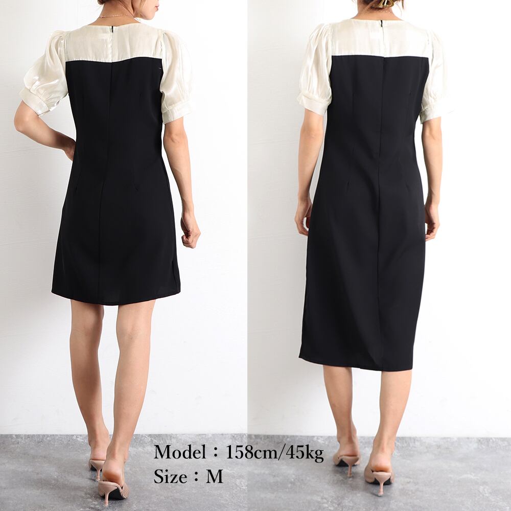 Vネックワンピース レディース 上品清楚 パフスリーブ ミニワンピ 異素材 きれいめ 光沢感 大人かわいい ドレス 夏服タイトワンピース黒 スリットワンピース 結婚式ドレス韓国風異素材使いが上級者見えのワンピース。首元を美しく魅せるVネック、袖切り替えデザインが上品な大人女性を演出。タックを施しきれいなシルエットでメリハリのあるボディラインを引き立たせる。パンプスやきれいめバッグと合わせると、大人フェミニンコーデに格上げしてくれる。本体素材:ポリエステル95%+ポリウレタン5%別布素材:ポリエステル100%タイプ:ショート丈/ロング丈カラー:ブラックサイズ:M/L/XLショート丈総丈:約82cm/85cm/87cm肩幅: 約31cm/約34cm/約35cm袖丈:約24cm/約25cm/約26cm身幅:約46cm/約48cm/約49cm胸囲:約92cm/約96cm/約98cmウエスト:約76cm/約79cm/約84cmヒップ:約94cm/約96cm/約100cmロング丈総丈:約105cm/106cm/107cm肩幅: 約31cm/約33cm/約34cm袖丈:約25cm/約26cm/約27cm身幅:約44cm/約46cm/約47cm胸囲:約88cm/約92cm/約94cmウエスト:約78cm/約82cm/約86cmヒップ:約94cm/約96cm/約98cm裏地:なし伸縮性:なし透け感:別布部分のみあり生産国:中国※商品の細部仕様は多少異なる場合がございます。予めご了承の上、ご注文お願い致します。