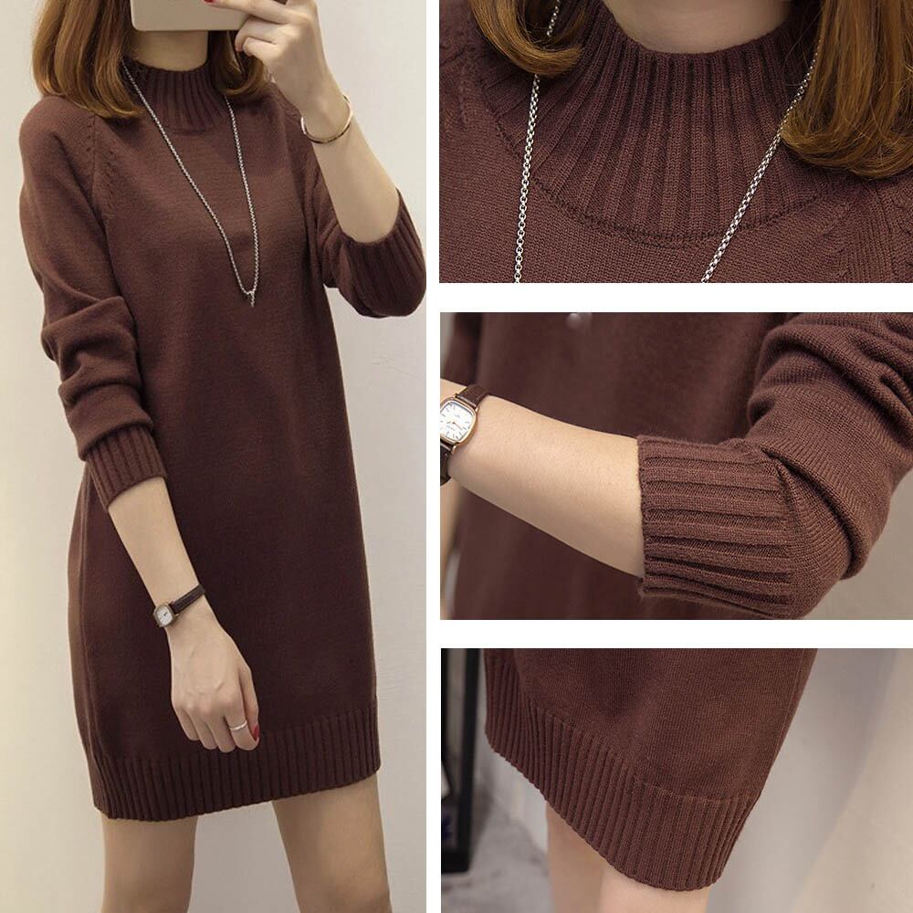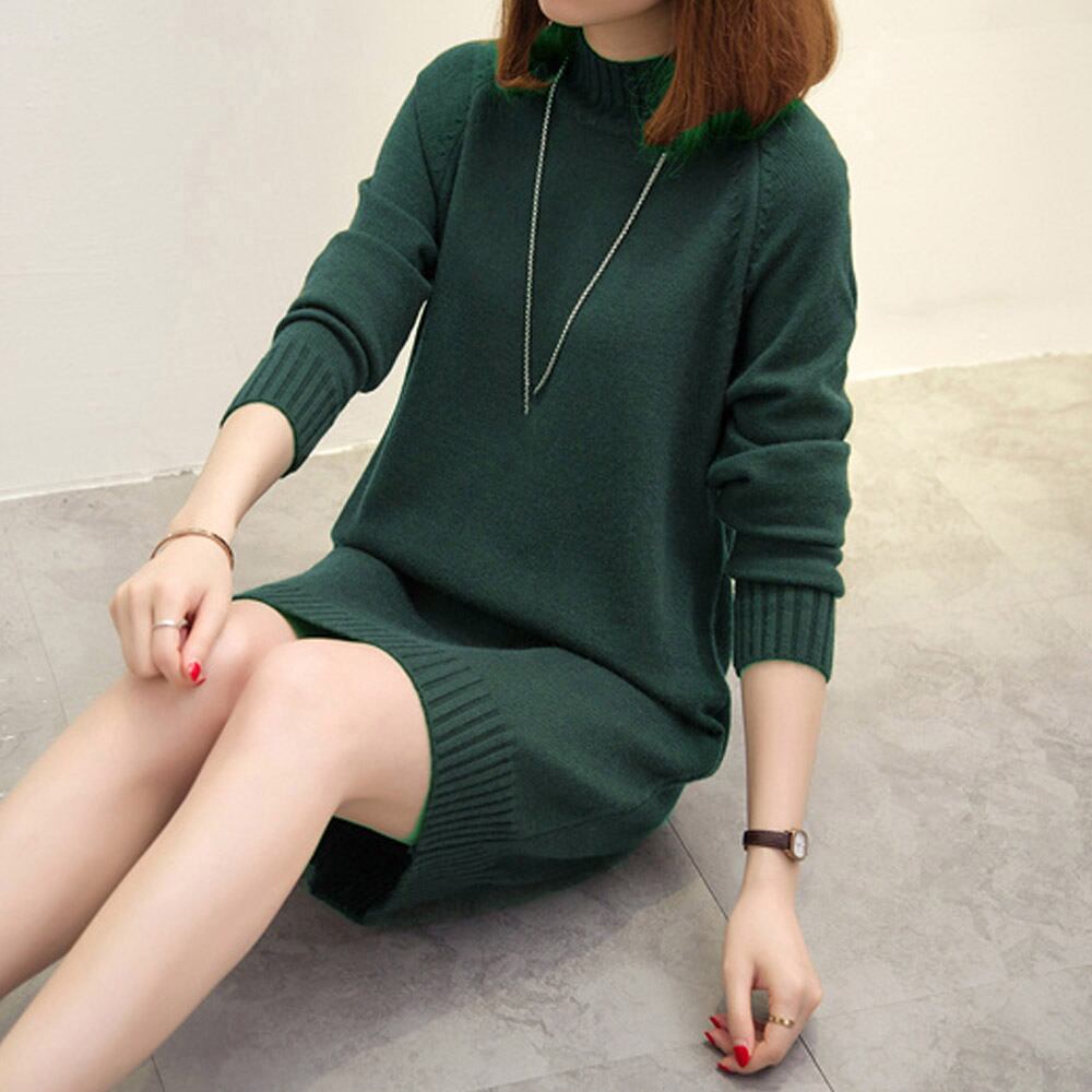 ニットワンピース レディース 長袖 チュニックワンピース 暖か 無地
