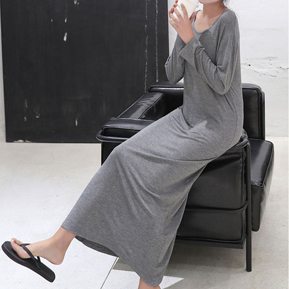 ラウンドネックのゆるとカジュアルなモーダルのマキシ丈ワンピストンと落ちるストレートのシルエットで縦のラインを強調し、スタイルアップの効果も、楽に着られ体型カバーにも楽に着られてデイリー使いにピッタリ、今年トレンドのレギンスと合わせるもオススメカラー:ブラック/ダークグレー/ライトグレー/ネイビー/ワインレッド素材:綿65%+ポリエステル35%サイズ:S/MS:着丈約117cm/肩幅約44cm/袖丈約44cm/バスト約94-122cm/ウエスト約94-122cmM:着丈約120cm/肩幅約45cm/袖丈約45cm/バスト約96-124cm/ウエスト約96-124cm裏地:なし伸縮性:あり透け感:なし生産国:中国※商品の細部仕様は予告なく変更になる場合がございます。交換/返品対象外になりますので、ご了承下さい。