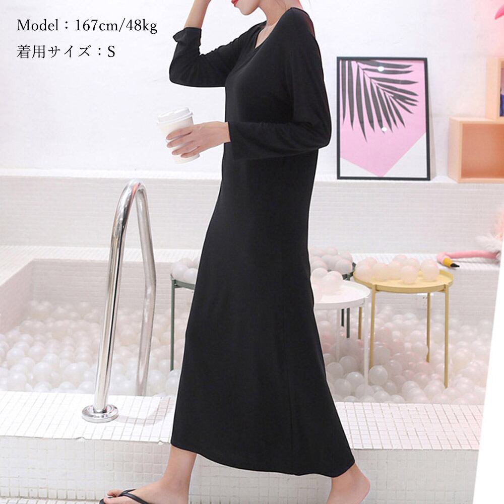 ワンピース レディース 長袖 ゆるワンピ 無地 体型カバー マキシ丈ワンピース