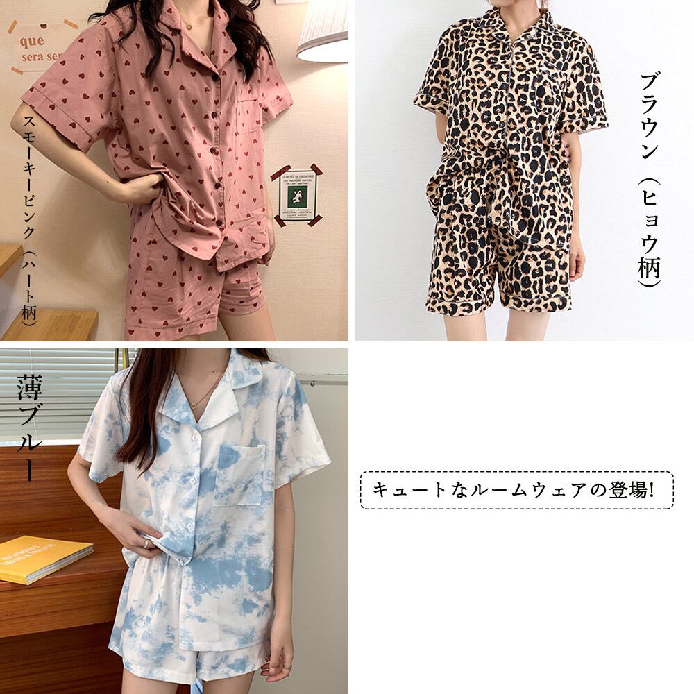 レディース 半袖 小粒ハート柄 春夏物 韓国風 ショートパンツ 大きいサイズ 可愛い 大人ナイトウェア リラックス