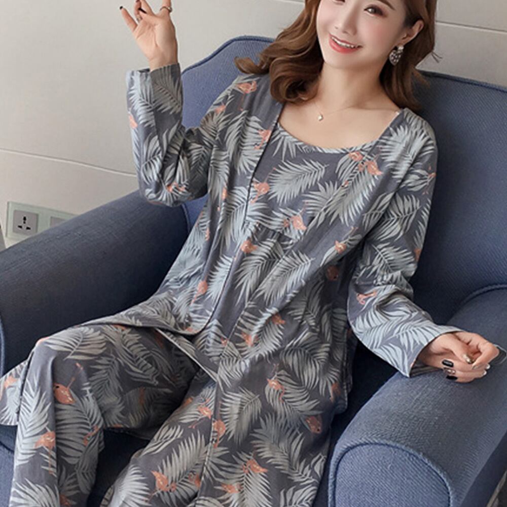 薄手寝巻き 可愛い 花柄パジャマセット 上下セットガウン付