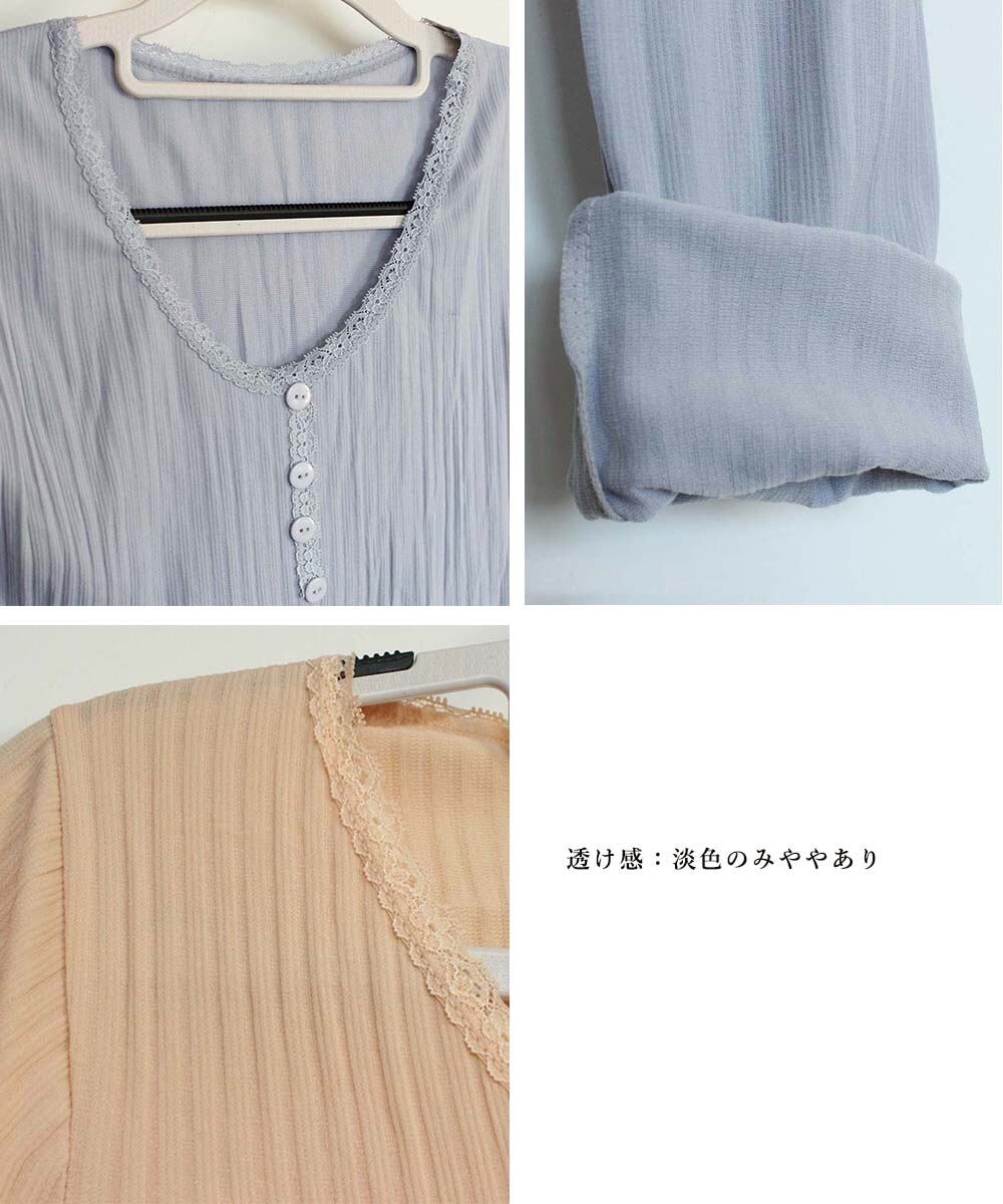 レディース 暖かい ルームウエア レース フィット 2点セット クルーネックトップス長袖 ストレッチ レギンス 肌着女性