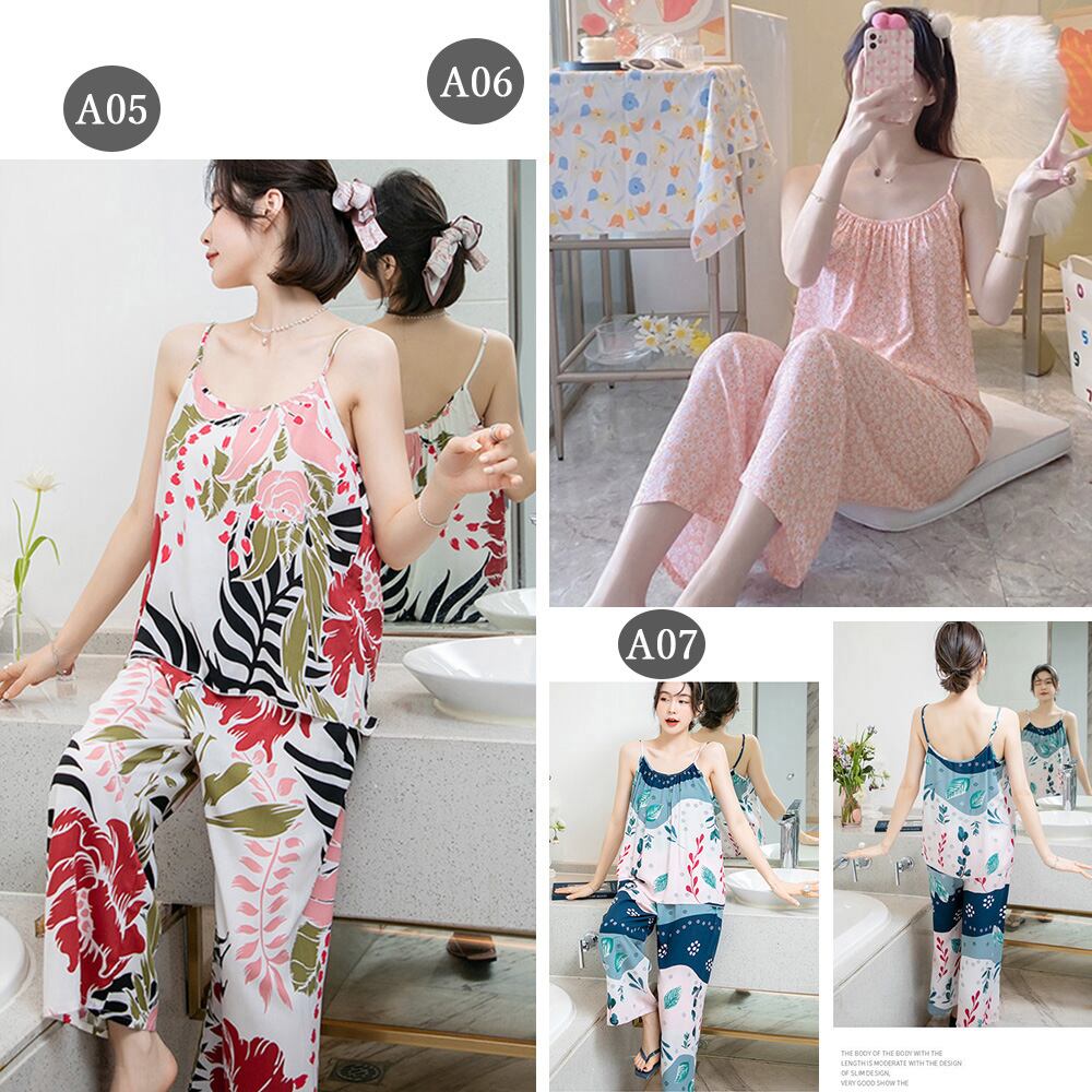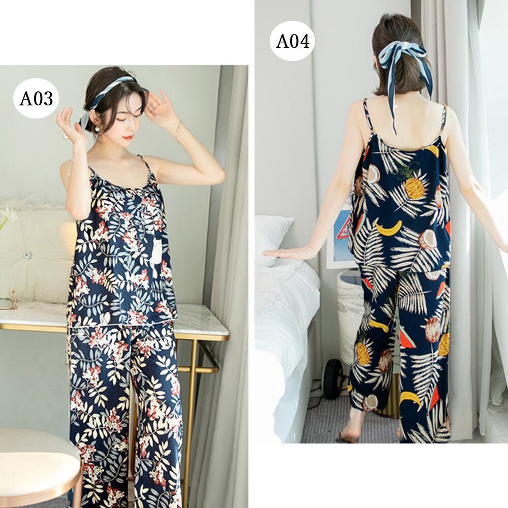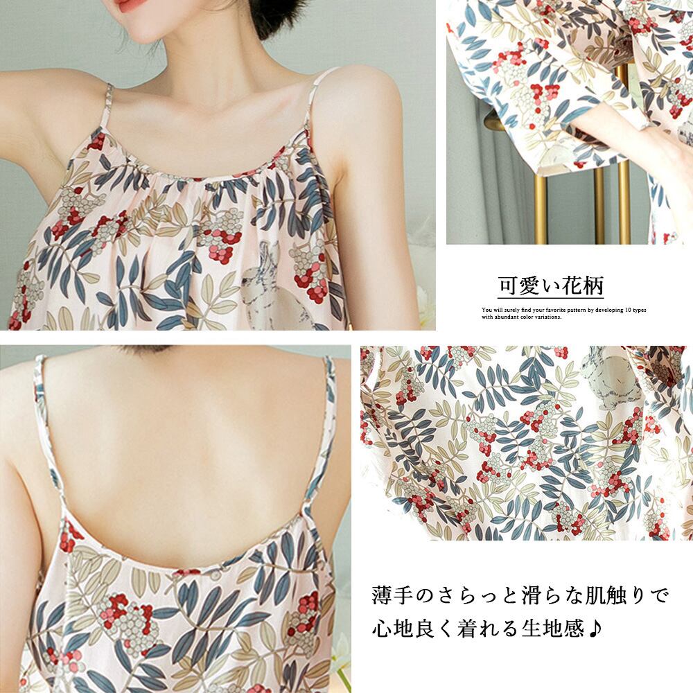 2点セット キャミパジャマ 体型カバー 部屋着 大人春秋夏 可愛い寝間着 キャミソール 長ズボンセットアップナイトウェア