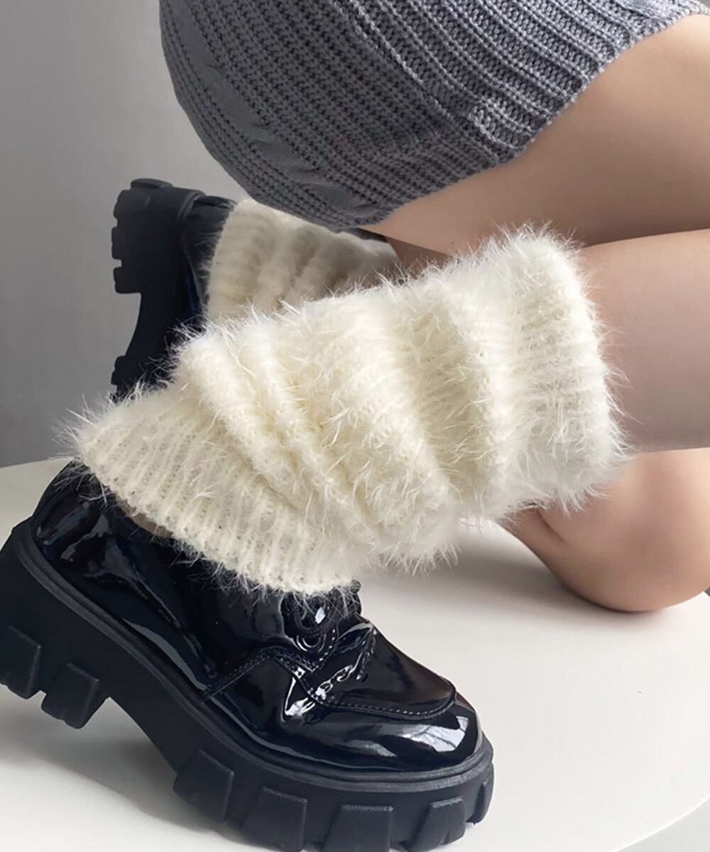 ニットレッグカバー ロング丈 ファーアームウォーマー 秋冬フットウェア 美脚 ルームソックス 防寒グッズ ボリューム