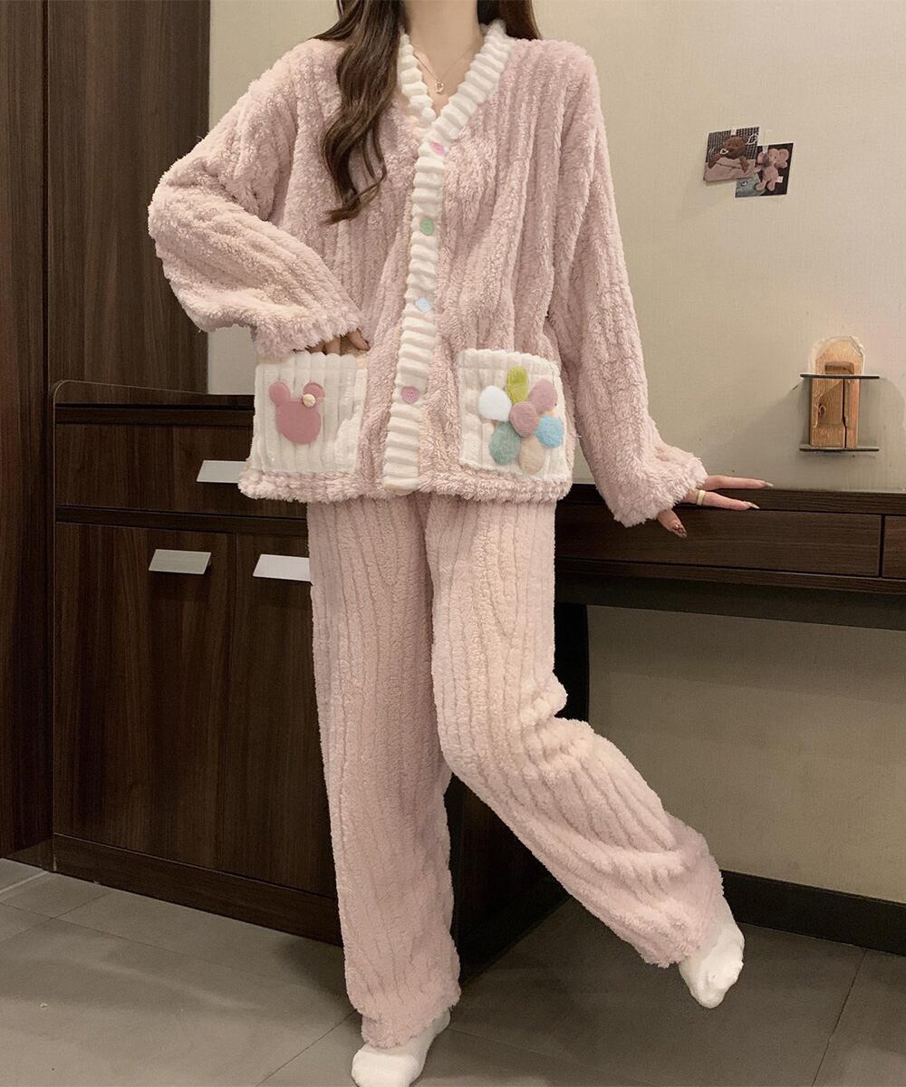 レディース もこもこパジャマ上下セット 大人可愛い寝巻き 暖かい長袖ナイトウェア 冷え防止 ボアパジャマ あったか部屋着暖かいルームウェア 室内着 着る毛布冬 お泊りパジャマ保温軽くて柔らかくて、冬でもあたたかく過ごせる上下2点のパジャマセットお部屋でゆったりと過ごすのにぴったりなルームウェア&パジャマもこもこでふわふわの触り心地が特徴で、包み込まれるような快適さトップスとボトムスがセットになったお得なアイテムで、コーディネートに迷わず楽しめる便利さも魅力素材:ポリエステル100%カラー:ミント/ピンクサイズ:ワンサイズトップス:着丈:約62cm 肩幅:約52cm 袖丈:約52cm ゆき:約78cm 身幅:約54cm 胸囲:約108cmボトムス:着丈:約94cm 股下:約59cm ウエスト(ゴム仕様):約60-110cm ヒップ:約108cm もも周り:約56cm裏地:なし伸縮性:なし透け感:なし生産国:中国※すべて平置きサイズです(採寸方法違いより、多少の誤差がございますので、ご了承ください)。※海外輸入品のため、商品の細部仕様は多少異なる場合がございます。予めご了承の上、ご注文お願い致します。
