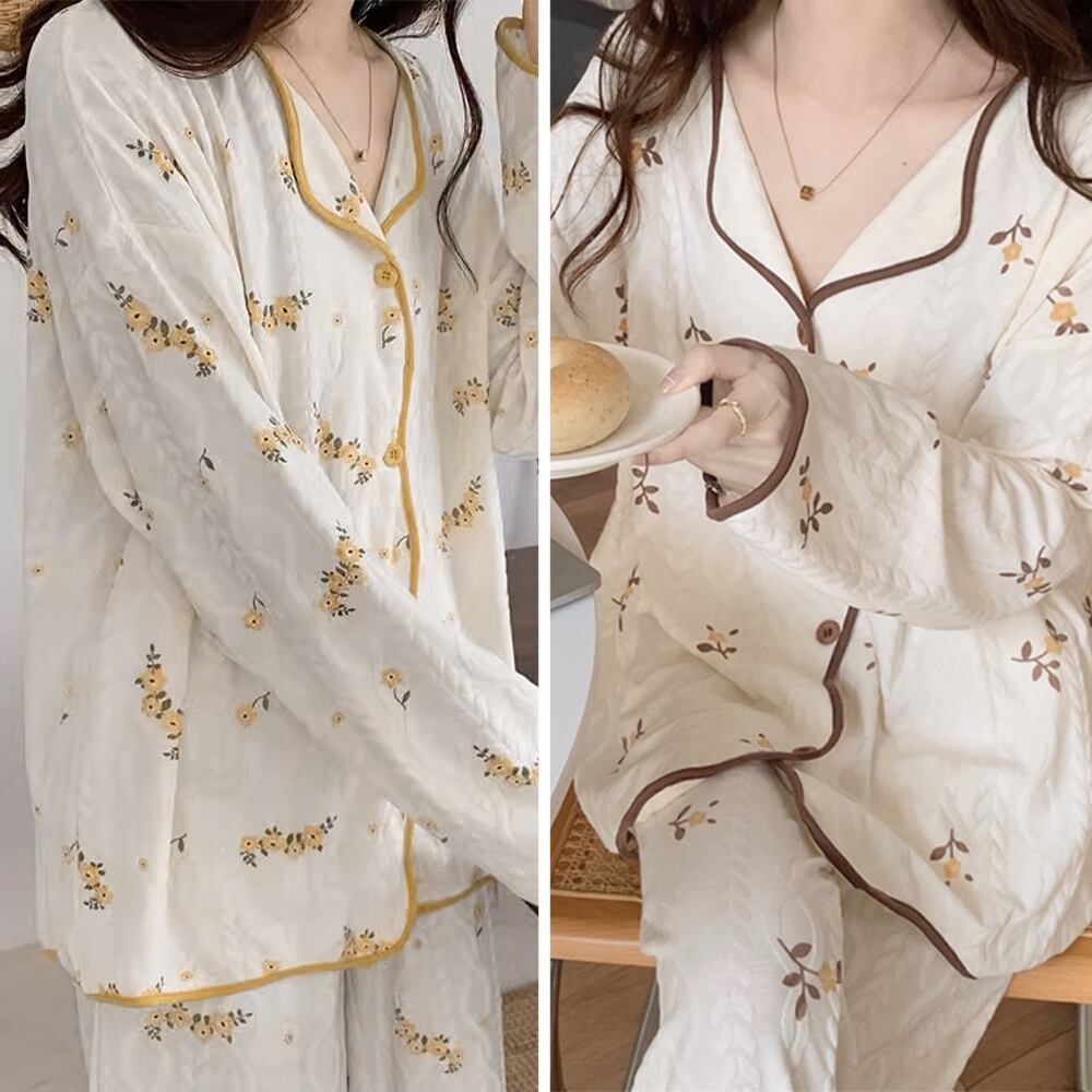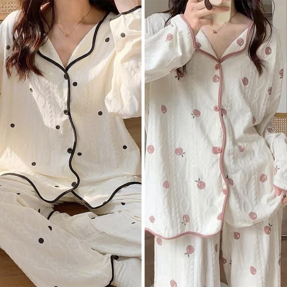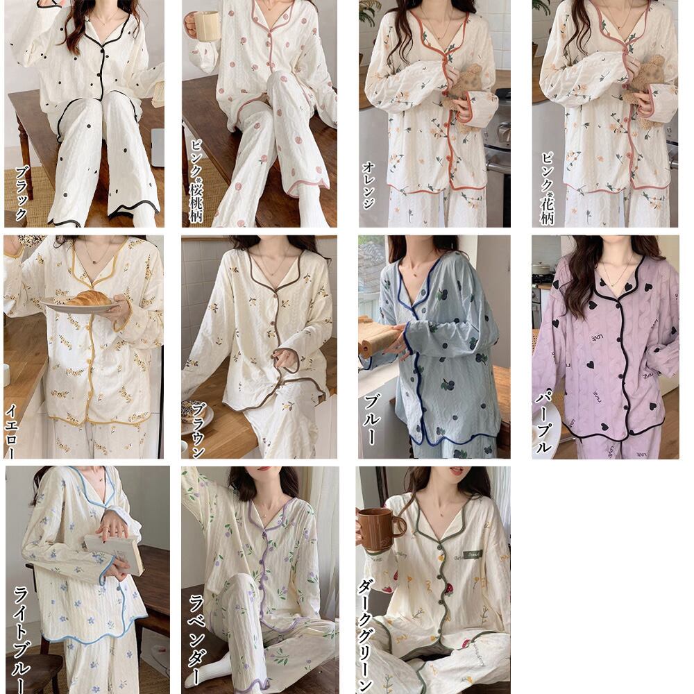 大人可愛い ルームウェア 修学旅行 パジャマセットアップ 総柄 ラウンジウェア リラックス ナイトウェア 春秋冬 寝巻きガーリー部屋着快適 女子会 パーティー お泊り寝間着セット心地良い滑らかな綿混生地を使用、ディテールまでこだわって仕上げた肌触りが良くて蒸れない薄手ルームウェア上下セットケーブル編みニットのようなシャガード風模様加工を加えることで、一気にシンプルさから格上げ、ガーリーテイストの柄もプラスして女性らしさをアピール忙しい毎日の中で少しでも自分を労わる優しい時間を過ごすのに最適な1着、1年中重宝する万能ラウンジウェアトップス素材:ポリエステル75%+綿25%ボトムス素材:ポリエステル75%+綿25%カラー:ブラック/ピンク*桜桃柄/ピンク*花柄/イエロー/ブラウン/オレンジ/ライトブルー/ブルー/ダークグリーン/パープル/ラベンダーサイズ:ワンサイズトップス:着丈:約63cm 肩幅:約53cm 袖丈:約48cm ゆき:約74.5cm 身幅:約52cm 胸囲:約104-110cmボトムス:着丈:約96cm 股下:約63cm ウエスト(ゴム仕様):約56-110cm ヒップ:約110-120cm もも周り:約58-68cm裏地:なし伸縮性:若干あり透け感:若干あり生産国:中国※すべて平置きサイズです(採寸方法違いより、多少の誤差がございますので、ご了承ください)。※海外輸入品のため、商品の細部仕様は多少異なる場合がございます。予めご了承の上、ご注文お願い致します。