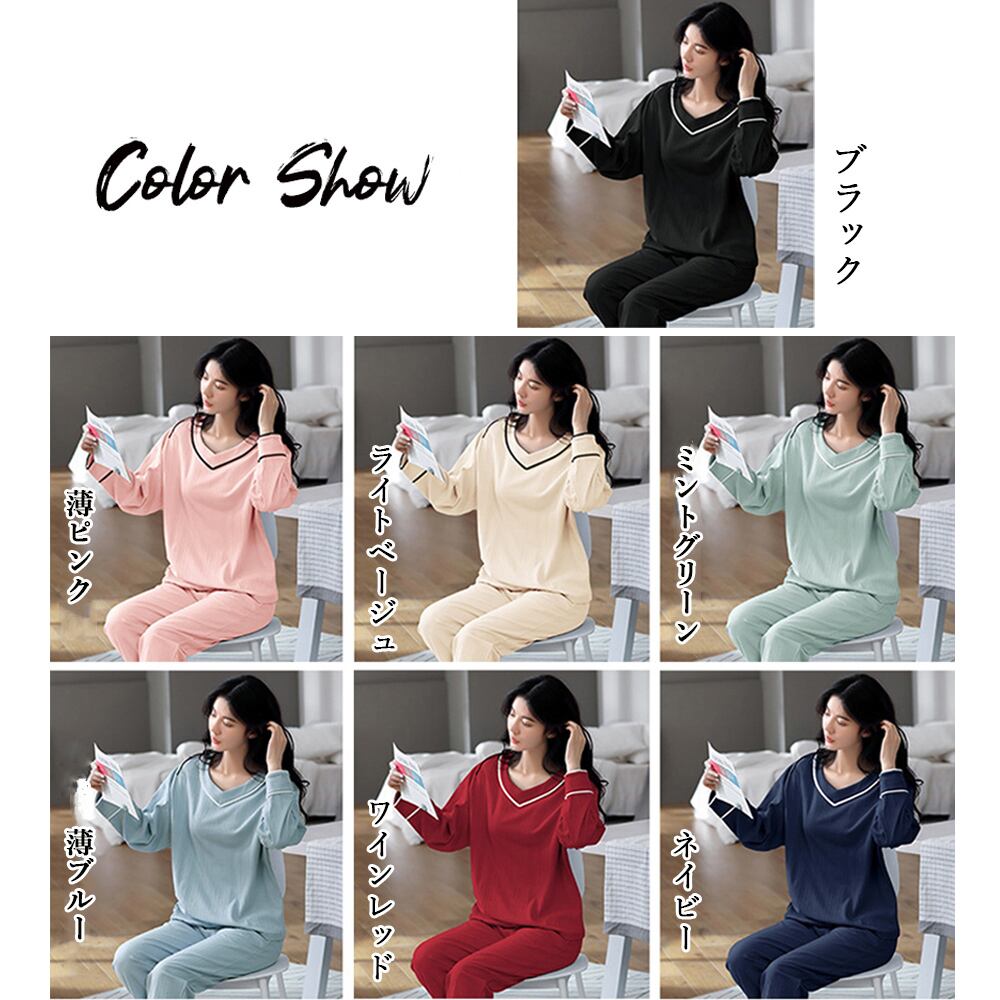 レディース パジャマ 大人 シンプル 部屋着 無地 トップス&パンツ セットアップ お泊り リラックス ナイトウェア秋冬春秋 入院パジャマ vネック女性寝間着 2点セット 寝巻き大人のリラックスタイムに寄り添うセットアップルームウェアシンプルなデザインでありながら素材にこだわったリラックス感のあるアイテムウエスト部分はゴム仕様なので、窮屈感がなく、お腹周りもラクな穿き心地おうち時間での部屋着はもちろん、お泊り女子会などでお揃いで着てもOK素材:ポリエステル70%+綿30%カラー:ブラック/ライトベージュ/ネイビー/薄ブルー/ワインレッド/薄ピンク/ミントグリーンサイズ:ワンサイズ(XXL)トップス:着丈:約63cm 肩幅:約51cm 袖丈:約52cm ゆき:約77.5cm 身幅:約51cm 胸囲:約102-120cmボトムス:着丈:約95cm 股下:約68cm ウエスト(ゴム仕様):約54-100cm ヒップ:約110-118cm もも周り:約64-82cm裏地:なし伸縮性:あり透け感:淡色のみ若干あり生産国:中国※すべて平置きサイズです(採寸方法違いより、多少の誤差がございますので、ご了承ください)。※海外輸入品のため、商品の細部仕様は多少異なる場合がございます。予めご了承の上、ご注文お願い致します。