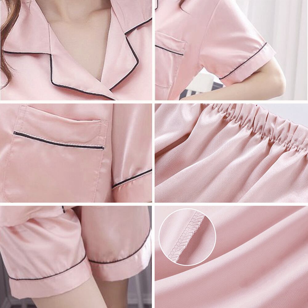 前開き 半袖 薄手トップス ショートパンツ ルームウェア 韓国風可愛い 上下2点セット きれいめ 寝間着 無地 お洒落夏おうち時間 寝巻き 光沢感 パジャマ 無地 ナイトウェア飽きのこないシンプルさが魅力のパジャマ着こなしやすい定番デザインに合わせた、サテン素材が鮮度アップのポイント美しい光沢感となめらかな風合いをおうち時間にも取り入れることができるトップス素材:ポリエステル100%ボトムス素材:ポリエステル100%カラー:ブラック/ホワイト/ネイビー/シャンパン/グレー/ブルーグレー/ピンク/ワインレッド/ダークグリーン/パープルサイズ:ワンサイズ(2XL)トップス:着丈:約64cm 肩幅:約42cm 袖丈:約22cm ゆき:約43cm 身幅:約53cm 胸囲:約106cmボトムス:着丈:約39cm 股下:約11cm ウエスト(ゴム仕様):約54-94cm ヒップ:約110cm もも周り:約56cm裏地:なし伸縮性:なし透け感:ホワイトのみ若干あり生産国:中国※すべて平置きサイズです(採寸方法違いより、多少の誤差がございますので、ご了承ください)。※海外輸入品のため、商品の細部仕様は多少異なる場合がございます。予めご了承の上、ご注文お願い致します。