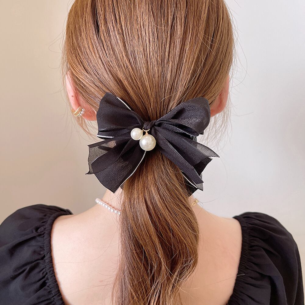 ヘアアクセサリー チュールリボン まとめ髪 パール バンスクリップ オフィス 大人可愛い エレガント おしゃれプチプラ