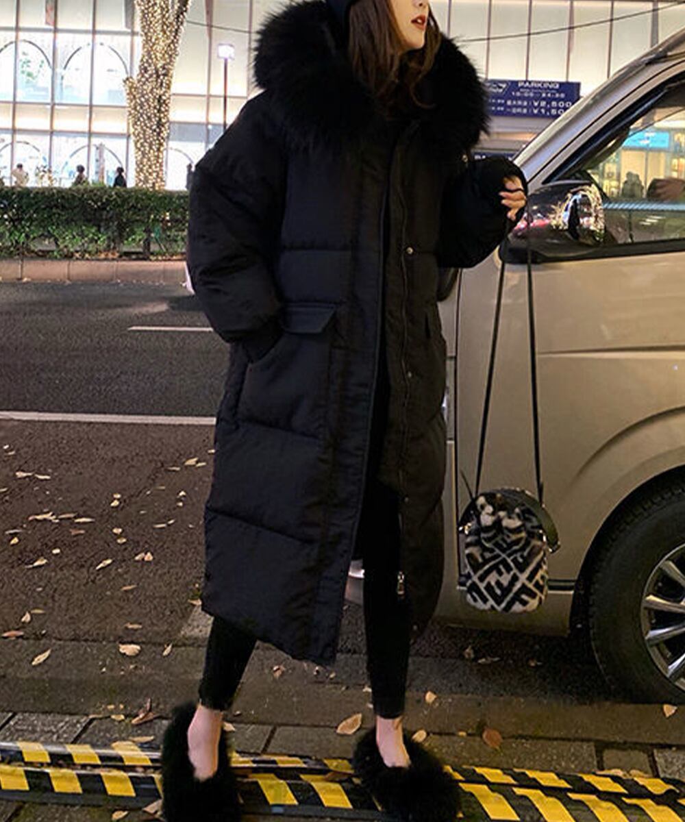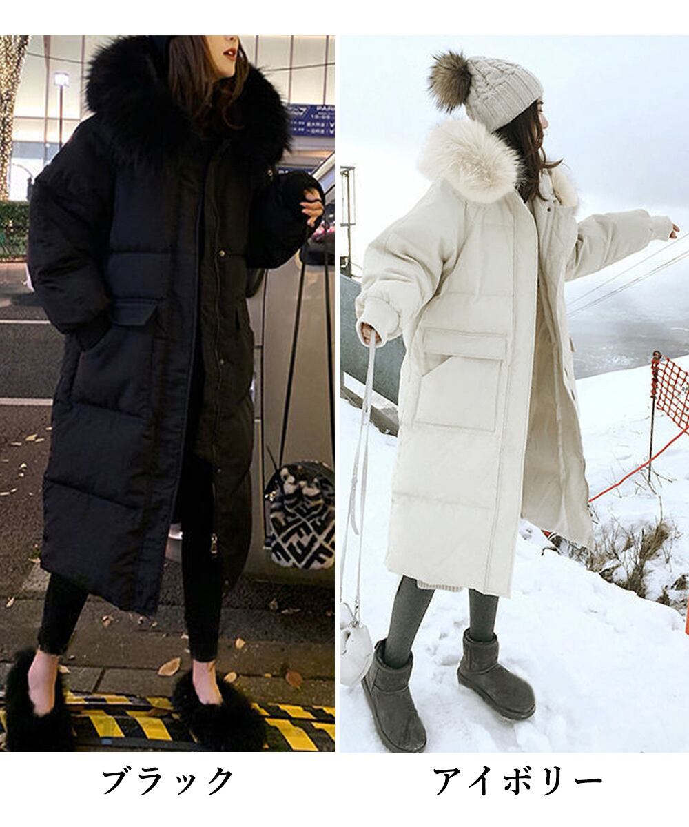 あったかアウター黒 エコダウンコート女 体型カバー防寒着冬